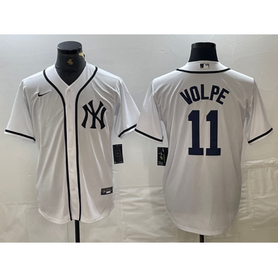 >Men's New York Yankees #11 Anthony Volpe White Fashion Cool Base Jersey