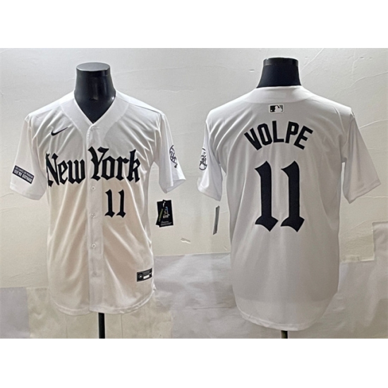 >Mens New York Yankees #11 Anthony Volpe White 'Gothic Legacy Edition' Vapor Premier Limited Stitched Baseball Jersey