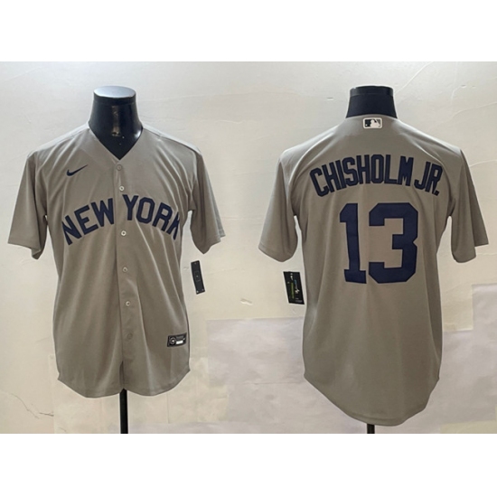 Men's New York Yankees #13 Jazz Chisholm Jr. Grey Cool Base Stitched Baseball Jersey
