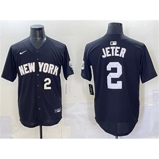 Men's New York Yankees #2 Derek Jeter Black Limited Stitched Baseball Jersey