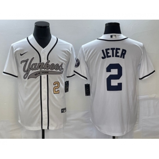 Men's New York Yankees #2 Derek Jeter Number White Cool Base Stitched Baseball Jersey