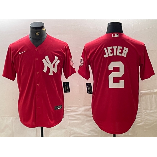 Men's New York Yankees #2 Derek Jeter Red Fashion Cool Base Jersey