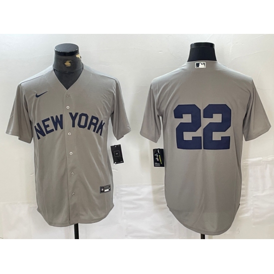 Men's New York Yankees #22 Juan Soto 2021 Grey Field of Dreams Cool Base Stitched Baseball Jersey