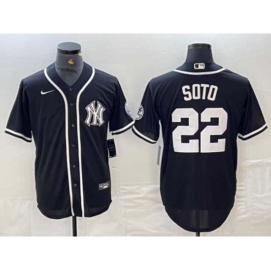 >Men's New York Yankees #22 Juan Soto Black White Cool Base Stitched Jersey