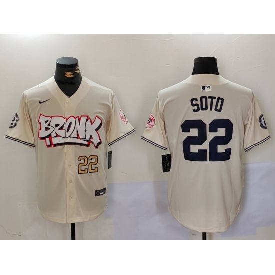 >Men's New York Yankees #22 Juan Soto Cream Limited Stitched Baseball Jerseys