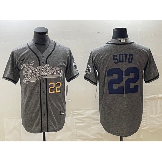 Men's New York Yankees #22 Juan Soto Number Grey Gridiron Cool Base Stitched Baseball Jersey