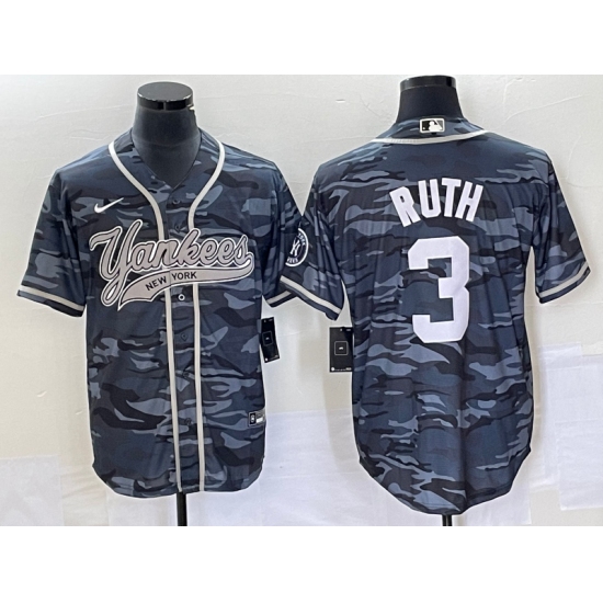 Men's New York Yankees #3 Babe Ruth Grey Camo Cool Base Stitched Baseball Jersey