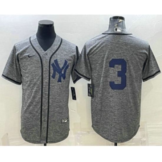 Men's New York Yankees #3 Babe Ruth No Name Grey Gridiron Cool Base Stitched Jersey