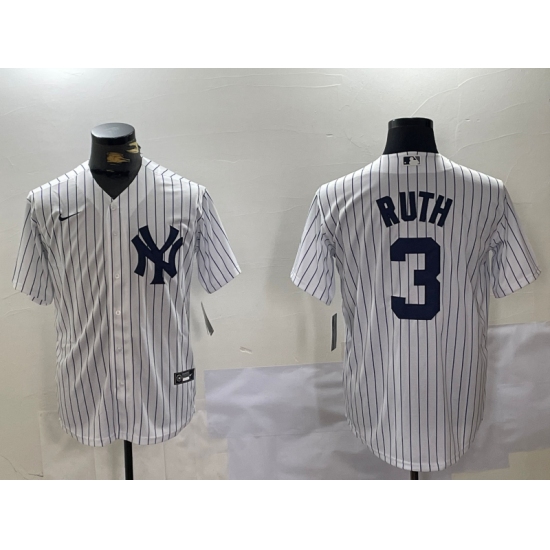 Men's New York Yankees #3 Babe Ruth White Name Stitched Cool Base Nike Jersey