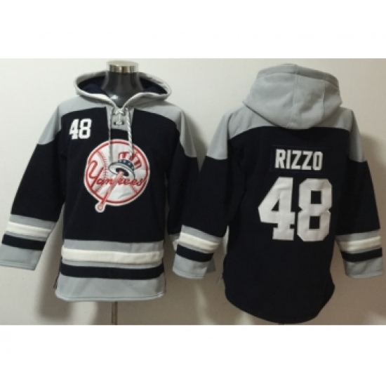 >Men's New York Yankees #48 Anthony Rizzo Navy Blue Ageless Must Have Lace Up Pullover Hoodie