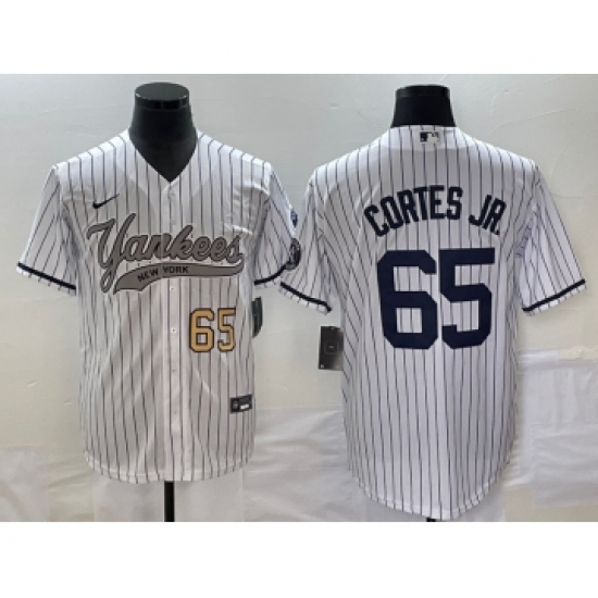 >Men's New York Yankees #65 Nestor Cortes Jr Number White Cool Base Stitched Baseball Jersey