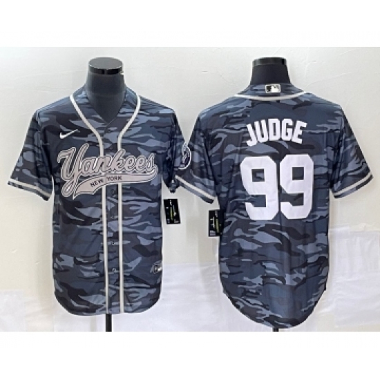 >Men's New York Yankees #99 Aaron Judge Grey Camo Cool Base Stitched Baseball Jersey