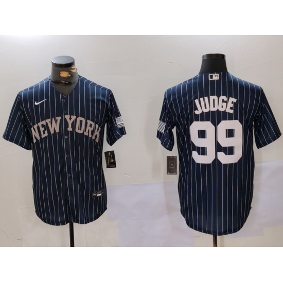 Men's New York Yankees #99 Aaron Judge Navy Pinstripe Fashion Cool Base Jersey