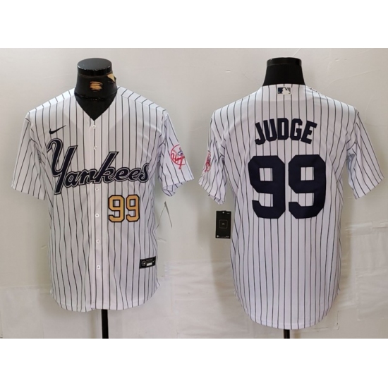 >Men's New York Yankees #99 Aaron Judge White Pinstripe Fashion Cool Base Jerseys