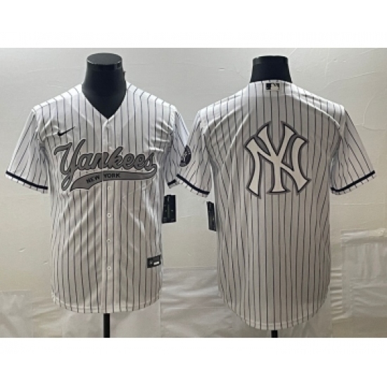 Men's New York Yankees Big Logo White Pinstripe Cool Base Stitched Baseball Jerseys
