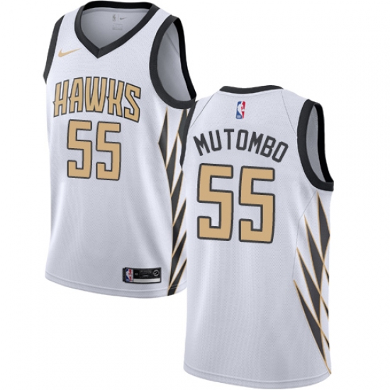 Men's Nike Atlanta Hawks #55 Dikembe Mutombo Swingman White NBA Jersey - City Edition