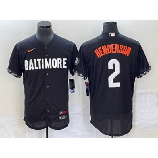 >Men's Nike Baltimore Orioles #2 Gunnar Henderson Black 2023 City Connect Flex Base Stitched Jersey