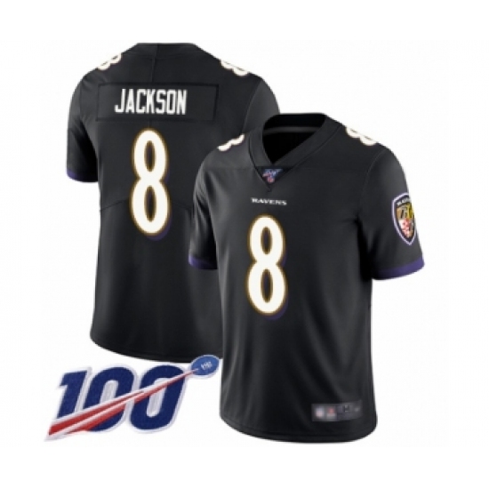 Men's Nike Baltimore Ravens #8 Lamar Jackson Black Alternate Vapor Untouchable Limited Player 100th Season NFL Jersey