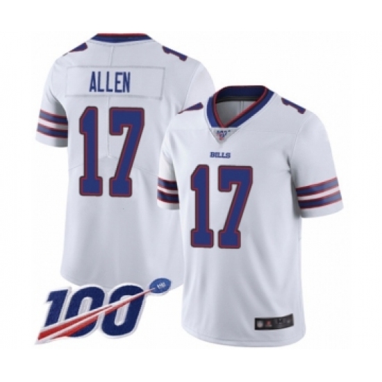 Men's Nike Buffalo Bills #17 Josh Allen White Vapor Untouchable Limited Player 100th Season NFL Jersey