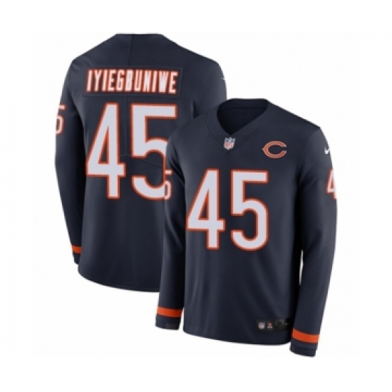 >Men's Nike Chicago Bears #45 Joel Iyiegbuniwe Limited Navy Blue Therma Long Sleeve NFL Jersey