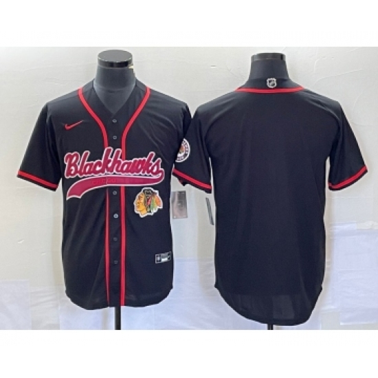 >Men's Nike Chicago Blackhawks Blank Black Cool Base Stitched Baseball Jersey