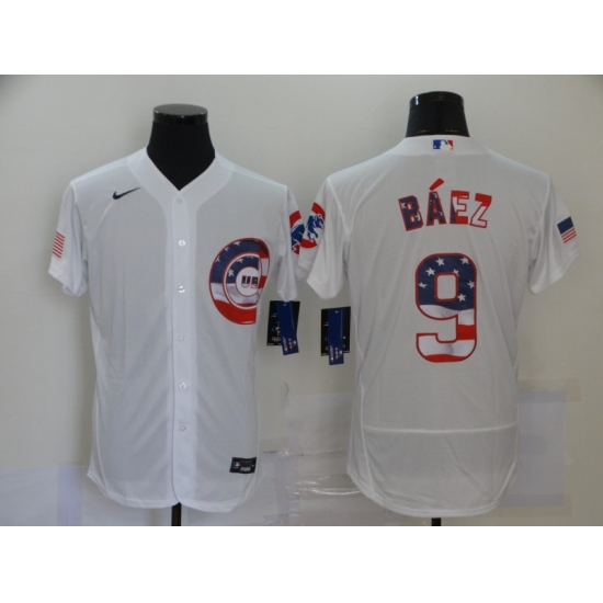 >Men's Nike Chicago Cubs #9 Javier Baez White 2020 Stars & Stripes 4th of July Jersey