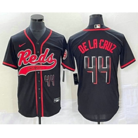Men's Nike Cincinnati Reds #44 Elly De La Cruz Number Black Cool Base Stitched Baseball Jersey