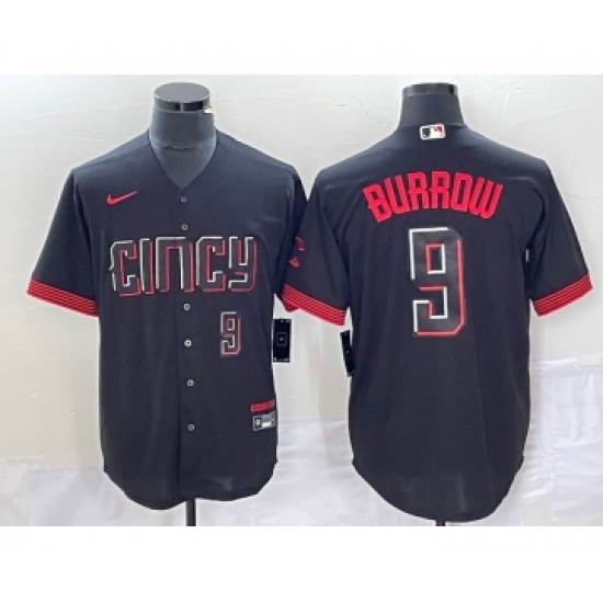 Men's Nike Cincinnati Reds #9 Joe Burrow Black 2023 City Connect Cool Base Stitched Baseball Jersey