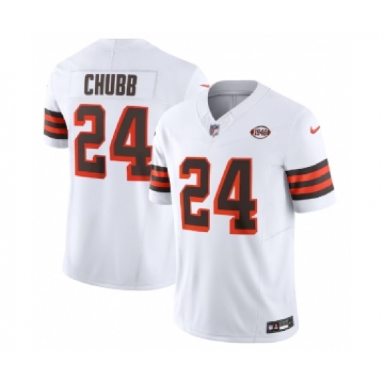 >Men's Nike Cleveland Browns #24 Nick Chubb White 2023 F.U.S.E. 1946 Collection Vapor Untouchable Limited Football Stitched Jersey
