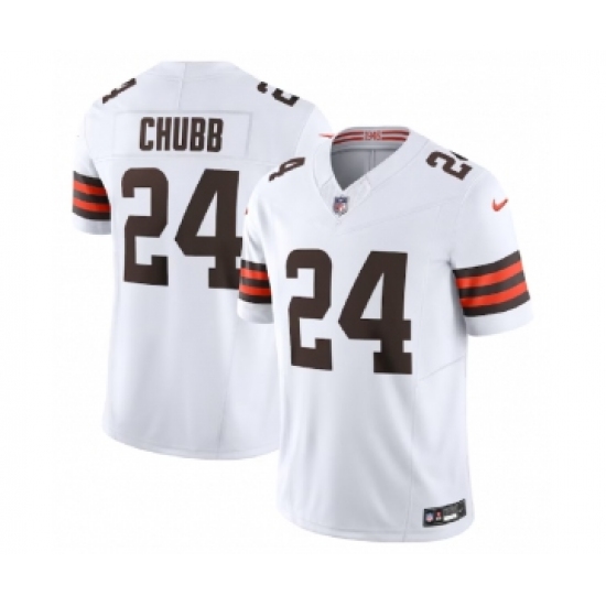 >Men's Nike Cleveland Browns #24 Nick Chubb White 2023 F.U.S.E. Vapor Untouchable Limited Football Stitched Jersey