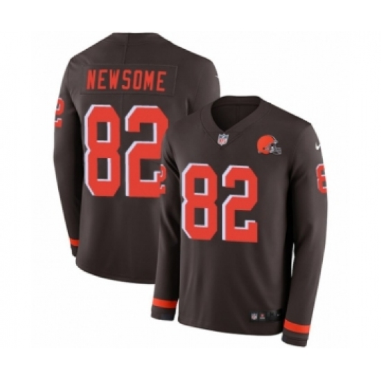 Men's Nike Cleveland Browns #82 Ozzie Newsome Limited Brown Therma Long Sleeve NFL Jersey