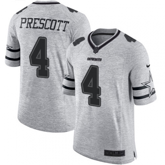 Men's Nike Dallas Cowboys #4 Dak Prescott Limited Gray Gridiron II NFL Jersey