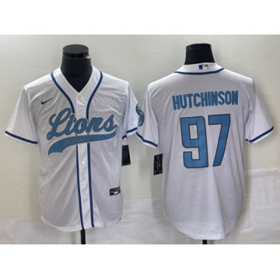 Men's Nike Detroit Lions #97 Aidan Hutchinson White Cool Base Stitched Baseball Jersey