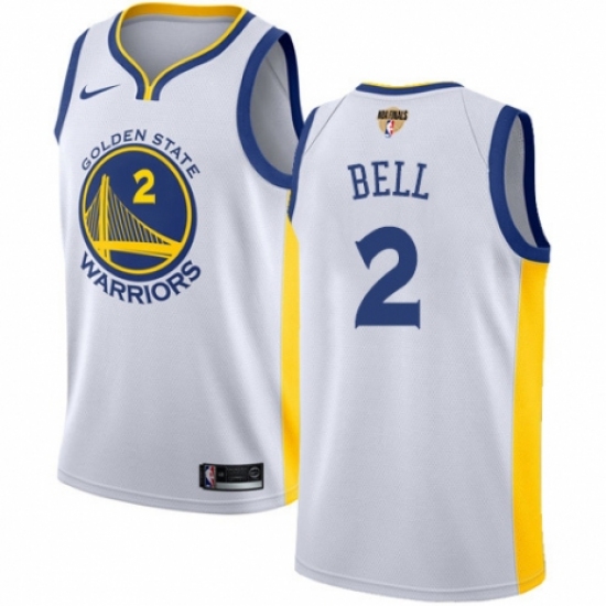 >Men's Nike Golden State Warriors #2 Jordan Bell Authentic White Home 2018 NBA Finals Bound NBA Jersey - Association Edition