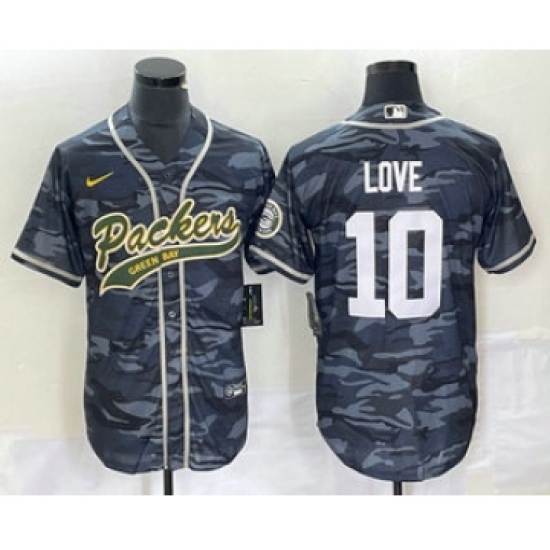 Men's Nike Green Bay Packers #10 Jordan Love Grey Camo Cool Base Stitched Baseball Jersey