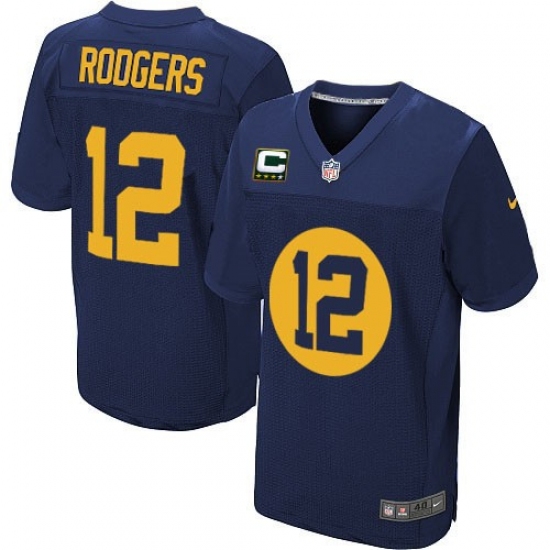 Men's Nike Green Bay Packers #12 Aaron Rodgers Elite Navy Blue Alternate C Patch NFL Jersey