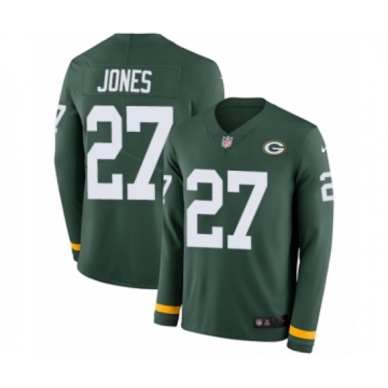 >Men's Nike Green Bay Packers #27 Josh Jones Limited Green Therma Long Sleeve NFL Jersey