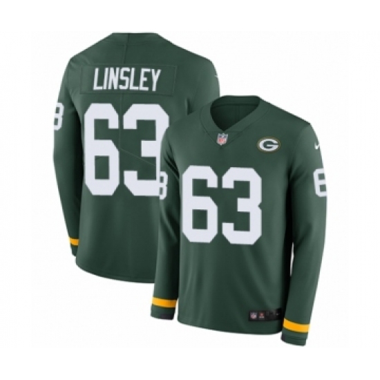 >Men's Nike Green Bay Packers #63 Corey Linsley Limited Green Therma Long Sleeve NFL Jersey