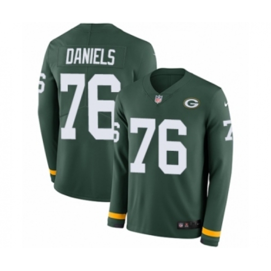 >Men's Nike Green Bay Packers #76 Mike Daniels Limited Green Therma Long Sleeve NFL Jersey