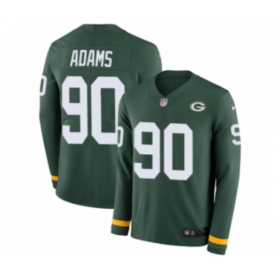>Men's Nike Green Bay Packers #90 Montravius Adams Limited Green Therma Long Sleeve NFL Jersey