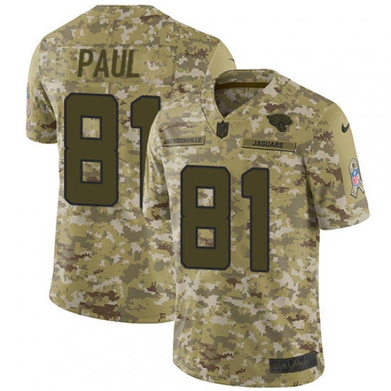 >Men's Nike Jacksonville Jaguars #81 Niles Paul Limited Camo 2018 Salute to Service NFL Jerseysey