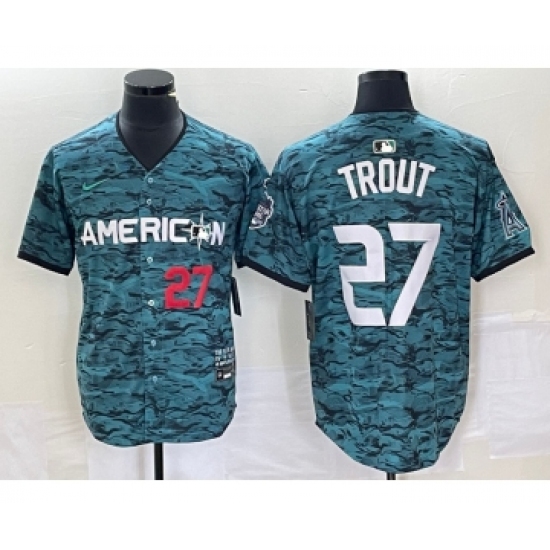 Men's Nike Los Angeles Angels #27 Mike Trout Teal 2023 All Star Cool Base Stitched Jersey1