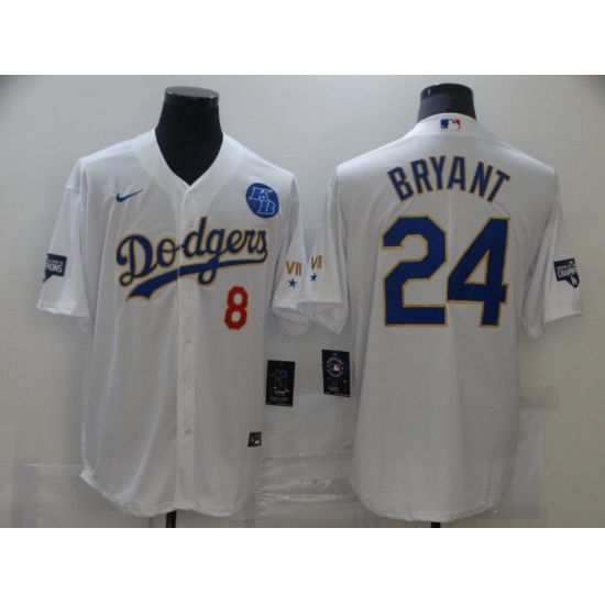 Men's Nike Los Angeles Dodgers #24 Kobe Bryant White Game Champions Authentic Jersey