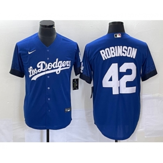 Men's Nike Los Angeles Dodgers #42 Jackie Robinson Blue 2021 City Connect Cool Base Stitched Jersey