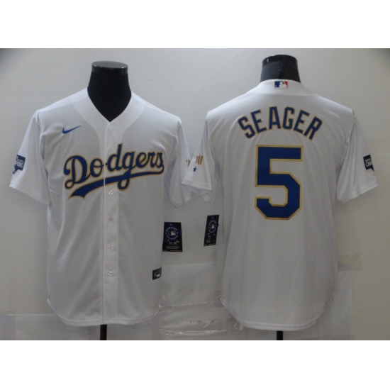 Men's Nike Los Angeles Dodgers #5 Corey Seager White Game Champions Jersey