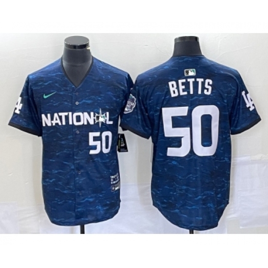 Men's Nike Los Angeles Dodgers #50 Mookie Betts Number Royal 2023 All star Cool Base Stitched Jersey