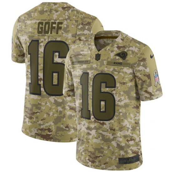 >Men's Nike Los Angeles Rams #16 Jared Goff Limited Camo 2018 Salute to Service NFL Jersey