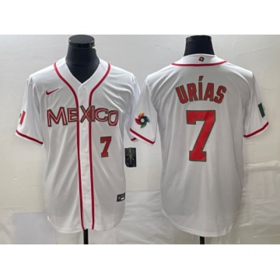 >Men's Nike Mexico Baseball #7 Julio Urias Number NEW 2023 White World Classic Stitched Jersey