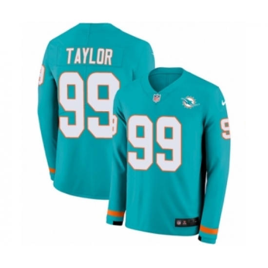 Men's Nike Miami Dolphins #99 Jason Taylor Limited Aqua Therma Long Sleeve NFL Jersey