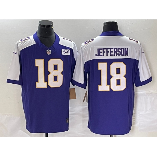 >Men's Nike Minnesota Vikings #18 Justin Jefferson Purple-White 2023 F.U.S.E. Vapor Untouchable Stitched Football Jersey